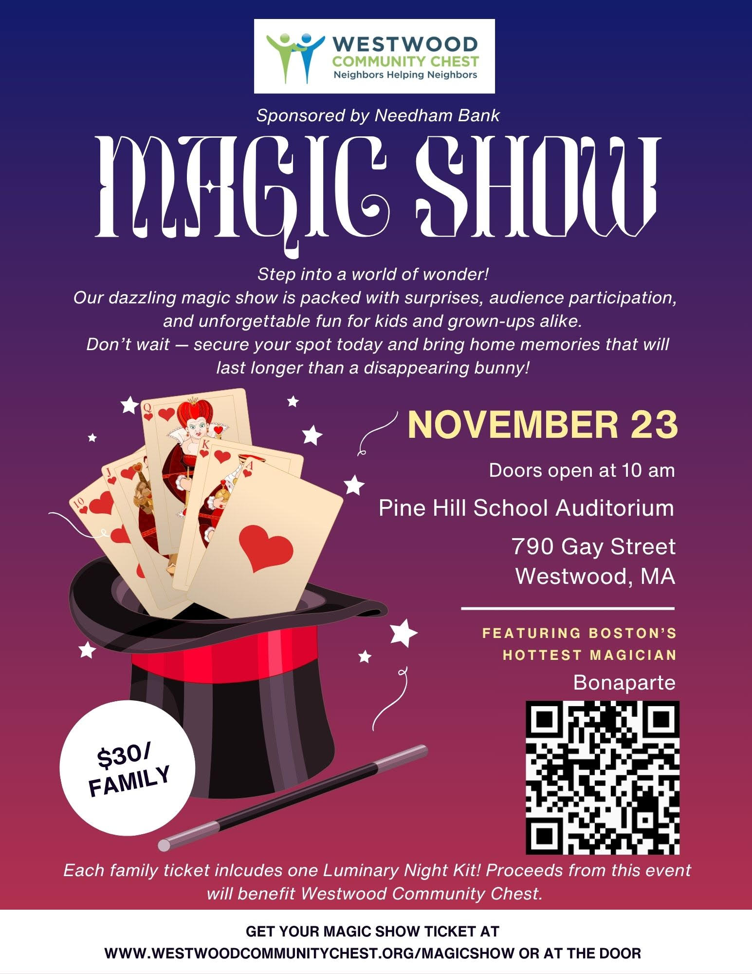 Westwood Community Chest is a community-based, non-profit organization that works to improve the well-being and quality of life of the residents of Westwood, Massachusetts. Through our evolving range of programs and services, made available both directly and in collaboration with other organizations and agencies. We offer assistance to Westwood individuals and families of all incomes and ages who have a variety of unmet needs.